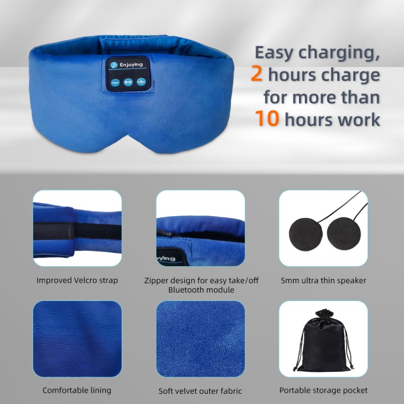 Unsere Seiden-Bluetooth-Schlafaugenmaske Sleeping Headphoens blue verabschiedet sich von Lichtstörungen und ermöglicht Ihnen einen tiefen Schlaf. Es nutzt fortschrittliche Lichtblockierungstechnologie, um externes Licht effektiv zu blockieren und eine dunkle und komfortable Schlafumgebung für Sie zu schaffen. Egal, ob Sie tagsüber ein Nickerchen machen oder nachts tief schlafen, es kann Ihnen helfen, schnell einzuschlafen und gut zu schlafen.