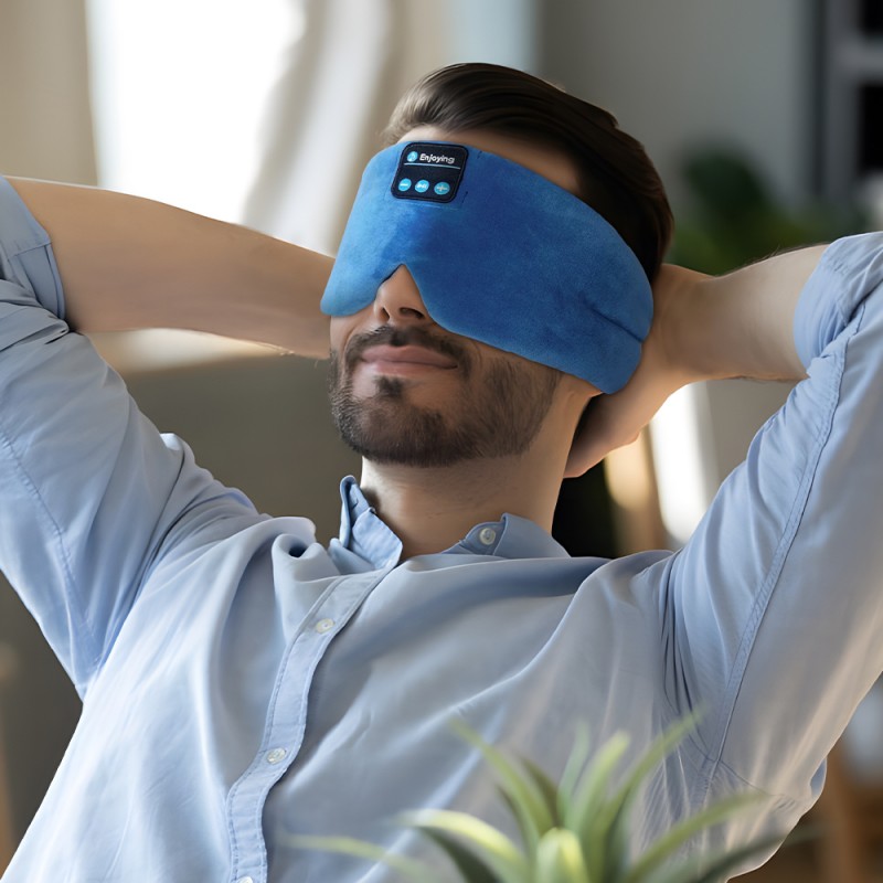 Bluetooth-Schlafaugenmaske aus Seide, Schlafkopfhörer, blau